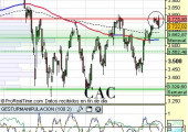 S&P: Es importante remarcar que en el caso del índice americano, la señal de la manipulación a la baja no se ha generado aún y esto es lo que puede salvar un poco el entorno del resto de bolsas. Ahora bien, los ascensos no han sido confirmados por una manipulación de precios al alza, lo que nos indica que estas pueden ser las últimas velas al alza antes del giro. Por tanto, una vez se genere la señal, entonces se podrá plantear una entrada de cortos en el cortísimo plazo con objetivo en 1.082 ptos y stop en 1.132.