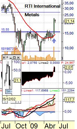 Bueno, la verdad que es una rotura impresionante, de libro y ejecutada con maestría por el mercado. Justamente la zona de control se ve superada por un aumento súbito de volumen mientras el comportamiento relativo pasa a mucho mejor que el mercado, el sector está al alza y el doble suelo en W lo vería hasta mi prima de 4 años (que nadie se ofenda si mi prima de 4 años lo vería antes que alguien que acaba de leer esta línea).