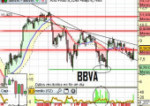 BBVA: La directriz bajista primaria la superó hace semanas mientras que aún queda otra secundaria en los 8,60 euros. Valor débil pero que al menos tiene algo de aumento de volumen, no como el primer caso. Si tuviera que elegir entre estos dos bancos, mejor BBVA. Tampoco me convence.