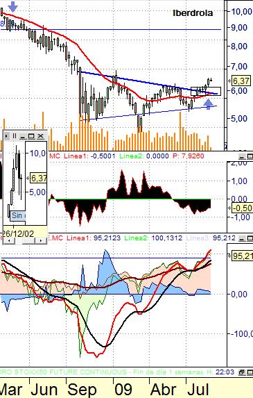 Podemos aprovechar una aproximación a los 6,02 euros para entrar con escaso riesgo y una buena rentabilidad potencial tanto por dividendo como por revalorización. Así pues me parece un buen valor para colocar una orden de compra en 6,02 y dejarla dormir con stoploss a 5,55 euros.
