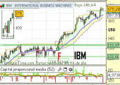 IBM: Fue comentada en 134 y posteriormente en la nueva fuga en 148 dólares. Actualmente es un claro mantener aunque ya hoy sube cerca del +3,5%. El riesgo por tanto quedaría bastante ajustado. Me sorprende su extraordinaria fuerza y nivel de volumen justo en los desarrollos alcistas. Espero que llegue a los 200 dólares, cota donde podría hacer un descanso. MANTENER o COMPRAR con stoploss a 165,50 dólares.