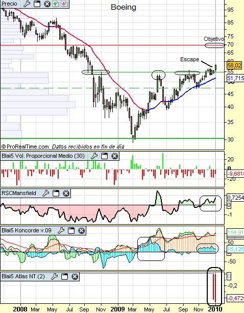 El sector es el Aeroespacial, ya comentado ampliamente en este blog y en el foro Aguila Roja como uno de los que mayor potencial tenían. Yendo al valor y centrándonos un poco, el objetivo de este escape son los 70,00 dólares, zona donde podríamos deshacer parte con un +50%. Aún es especular mucho, pero ya se puede ir subiendo los stopsloss a stop de beneficio y dejarla funcionar.
