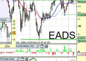 Si seguimos mirando el sectorial de Aeroespacio y Defensa, EADS sale como una de las rezagadas, pero que podría estar despertando en estas últimas semanas. Su RSCMansfield pasa a +0,60 y vuelve a conseguir cerrar por encima de 14,00, buen síntoma. Puede tener una subida potencial hasta 16,35, y una vez haga un apoyo, podría superar esta importante resistencia y volar alto.