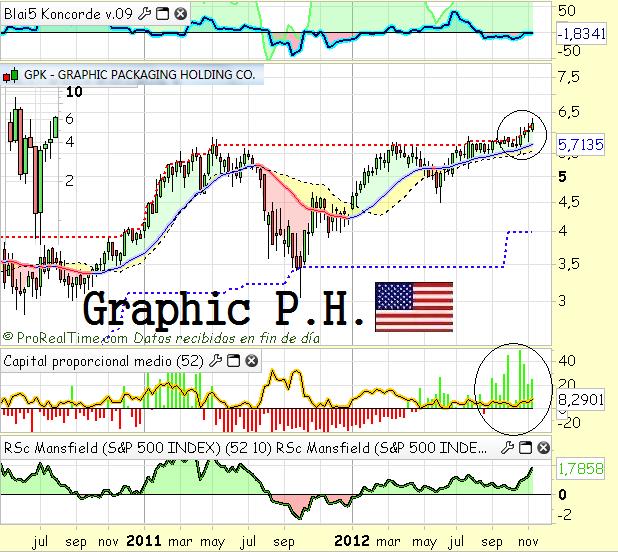 Acción muy interesante perteceneciente a sector normalito. La pregunta que me hacen a mi correo es sobre objetivos. Aquí se ven dos claros formados por las dos «depresiones» que formó el precio antes de tomper el triángulo. Si proyectamos esas «hondonadas» hacia arriba se generan los objetivos mencionados. Me gusta muchísimo la gran acumulación y entrada de dinero que está teniendo, su fortaleza y su camino a máximos históricos.