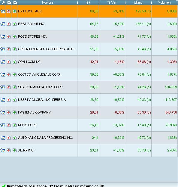 En cualquier caso estoy trabajano con estas dos plataformas para ofrecerte la mejor información. Haciendo un esfuerzo en programación, he conseguido tener los elementos principales de mis búsquedas, aunque aún me faltan los más complejos: La Mano Fuerte y el Capital Proporcional Medio. Las acciones resultantes de esta búsqueda cumplen las siguientes condiciones: