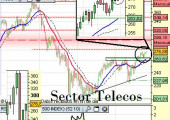 Sector Telecos: Está en 277 y aún proyecta a niveles de 299-300. Esto es una proyección cercana al 7% por lo que estemos atentos. Ha pasado a mejor que mercado sin embargo en las últimas semanas ha estado un poco reticente a subir. Aún mantiene una fuerza relativa en +0,20 y mientras siga siendo positiva podremos mantener sin miedo. Poco a poco el sector irá ganando altura y tomará el testigo a sector Retail y Menaje, o eso pienso.