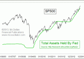 Poner el gráfico juntos de esta manera nos ayuda a ver la importancia que las compras de la Fed tienen en la tarea de mantener el mercado alcista para las acciones.