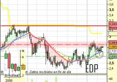 EDP: Electricidad de Portugal, uuuffffff!!! habrá pensado alguno.. si están rescatados, ¿cómo pones un valor de estos? bueno, su aspecto es interesante y por ello lo menciono en la lista. La filial de renovables tiene muy buen aspecto también aunque el riesgo supera ligeramente el 10%. El caso es que EDP está realizando su figura de giro alcista con entrada de mano fuerte. Me gusta y el riesgo apenas supera el 3%, con un margen del 1%, está situado en el 4%, bajo riesgo alta recompensa, aunque tendrá que superar resistencias.