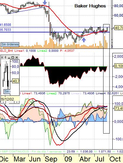 De momento el sectorial está fuerte mientras el precio del petróleo se mantiene por encima de los 70 dólares y no hay que obviar ninguna de las acciones que componen el sector y que muestran un comportamiento tan bueno como Baker. En esete caso concreto, el valor tiene una fuerte acumulación de mano fuerte, un comportamiento relativo que va a cruzar cero y un volumen muyy sospechoso en zona de mm30, tan sospechoso que ya sabeis quien es el responsable que ahora esté subiendo: si, la mano fuerte y su compra encubierta.