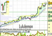 – Lululemon (LULU). Otro máximo de elevado riesgo. Fijaros qué buena compra fue en 32 y 45 dólares. Estos nuevos máximos tenían un riesgo menor al 9%, esos son los que debemos buscar!! no los que superan ampliamente el 10% de riesgo. Es un valor a mantener pero esperar mejor ocasión para entrar.