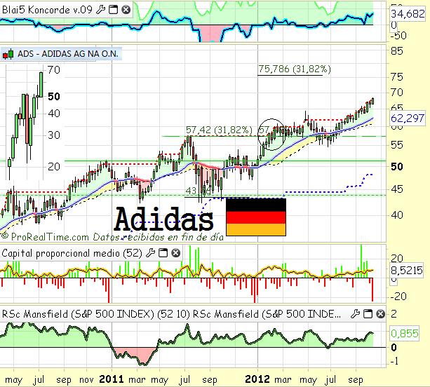 Cuando comento «objetivo cumplido» quiere decir que puede haber acabado el potencial de subida a no ser que suba libre, en cuyo caso podría dilatar el movimiento. Al no tener una referencia puede ser algo más peligroso. En el caso de Roche está muy cerca de los máximos de 2010 y puede tomarse algo de descanso pese a ser un valor de 10.