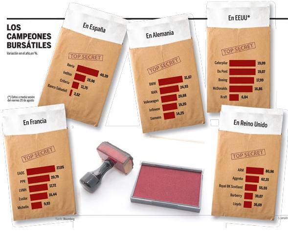 En esta cosecha de números rojos hay compañías que han conseguido la gesta de, no sólo aguantar en positivo, sino alzarse con la medalla de los mejores valores de las principales bolsas del mundo. Los expertos desvelan la pócima secreta que ha alimentado la cotización de estos valores. En algunos casos hay elementos en común que han aportado vitaminas a las cotizaciones, como la apreciación del dólar frente al euro, que ha dado oxígeno a las empresas exportadoras en el parqué.