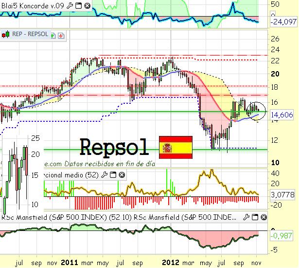 No me convence ni su debilidad crónica ni su escaso capital negociado semana a semana, que sigue siendo más bajo al promedio anual visto por el CPM. El sectorial sigue siendo débil desde abril de 2012 y no consigue superar sus niveles clave. Seguiría en estado de espera mientras se define. No mantener si pierde el stoploss.