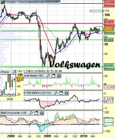 Es el valor del sector Autos Europa que más me gusta. Las razones de mi preferencia son fundamentalmente 3: es un valor fuerte, en máximos anuales y con alto apoyo de dinero o CPM alto. El lastre es el sectorial que aún no se ha terminado de decantar por los ascensos. Las compañeras de sector algunas rozaron máximos históricos hace unos meses y ahora es normal estre «trasvase» de capital hacia otras compañías más «olvidadas» como puede ser VOW. Comprar o mantener parece una buena idea de trading.