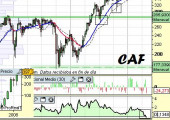 CAF: Está flojeando y esto se nota en el RSCMansfield, a punto de pasar a peor que mercado global. Sin embargo la zona actual puede ser de compra, ahora bien, el stoploss no puede ir muy lejos de 380 euros. El valor pasó a subir libre una vezs superó 286. Qzuiás nos interesen valores que hayan pasado a subir libres hace poco.