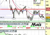 El Trigo está haciendo nuevos mínimos de 3 años con pocos visos de rebote si miramos el volumen y la fuerza relativa, nada positivas. Parece que está cayendo por su propio peso mientras la mm30 marca la tendencia bajista de forma clarísima. Aunque la operativa en materia prima es compleja, el consejo sería el de abrir cortos o mantenerlos con stop en 532. Lo suyo es esperar a que toque la mm30, y con paciencia aguantar los cortos mientras la tendencia va confirmando.