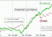 Es demasiado generalizar afirmar que tal o cual presidente será mejor para la bolsa ya que depende de cuándo mires el gráfico. Si sale Obama mañana elegido, en el corto plazo la bolsa avanzaría en el primer año para terminar ascendiendo menos al final. Si el presidente fuera Romney el escogido, la bolsa podría iniciar una subida de corta duración y después un lateral dubitativo mientras las cuestiones acerca de las nuevas políticas se ciernen sobre los mercados. En el año y medio de mandato alcanzaría su mínimo para luego acabar despegando y adquiriendo la confianza de los mercados.