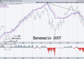 Por último y como señal alcista, la AD de NHNL logró superar los máximos previos julio de 2011 lo que significa que no habrá divergencia bajista por el momento que comprometa la tendencia alcista del índice. Cuando se suceda entonces podremos decir que la amplitud de mercado desde este punto de vista anunciará un mercado a la baja. Realmente es otra manera de ver lo mismo y por esto nunca he comentado nada al respecto, porque realmente es usar una misma herramienta pero desde otro foco diferente. Como analogía podríamos fijarnos en marzo de 2007 para plantear un posible escenario para dentro de 6-9 meses.